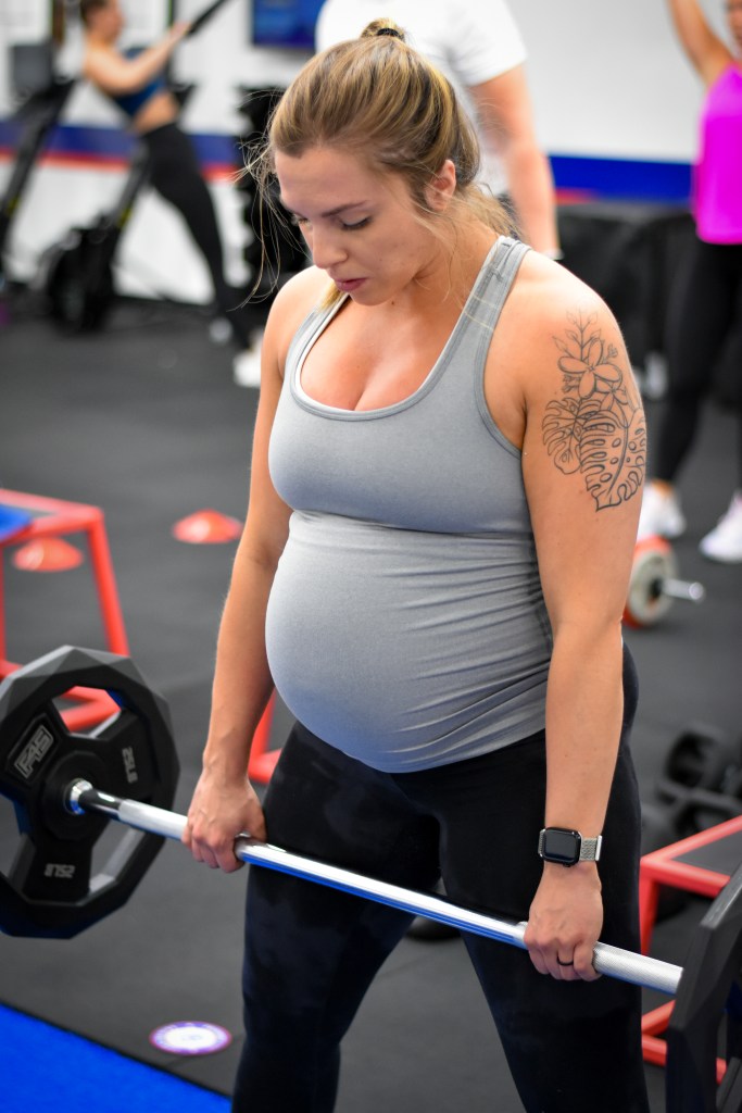 Even though I am not a fellow mom, as a fellow woman, the topic of pregnancy is exciting and terrifying all at the same time. Our bodies can do incredible things, and I didn’t realize we could continue our fitness journey along the way. When I asked Jess to compare her pregnancies, she said, “I’m doing a lot more, and better, this pregnancy! I’ve continued high intensity training along with strength training, but my first pregnancy I mainly stuck to walking and some strength training. I feel much lighter on my feet this time even though I’m showing bigger. The aches and pains are about the same for each pregnancy, but I’m not succumbing to them this time.”